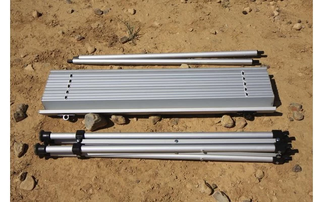 Standfeste und sehr ansprechende Lösung. Trotz des kleinen Packmaßes und des geringen Gewichts hat man einen Tisch, der etwas trägt, eine stabile Oberfläche und genug Beinfreiheit bietet.