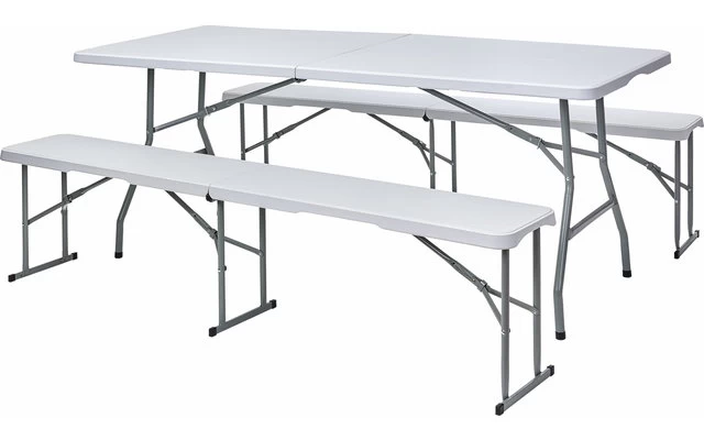 Faltbank 2er-Set welches robust, wetterfest und sehr stabil ist. Durch die Klappfunktion lässt sich das Set leicht transportieren und nach dem Einsatz platzsparend wieder verstauen. Die Bänke sind mit einem witterungsfestem Stahlrohrgestell ausgestattet. Lässt sich vielseitig einsetzen, sowohl Indoor als auch Outdoor. Mit praktischem Tragegriff versehen.